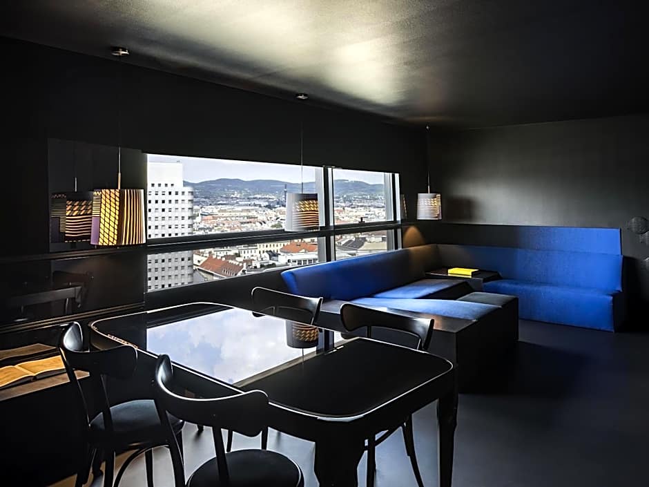 This spacious color-themed suite decorated in black and blue offers a comfortable living area with breathtaking views of Vienna, a Bose Wave Music System, and free high-speed internet access. The large bathroom comes with heated flooring, a separate rainforest shower, a bath, and exclusive Comfort Zone skin care products. A complimentary mini-bar with juices, mineral water, Nespresso coffee and tea making facilities are provided at no extra cost.