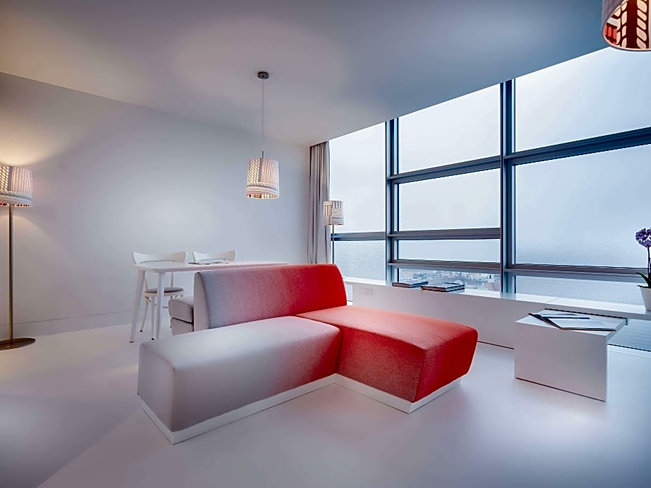 This color-themed room provides views of the Giant Ferris Wheel. It is decorated in white offers Nespresso coffee machine and Bose Wave Music System. The luxuriously decorated private bathroom features separate bathtub and shower, as well as exclusive Comfort Zone skin care products.